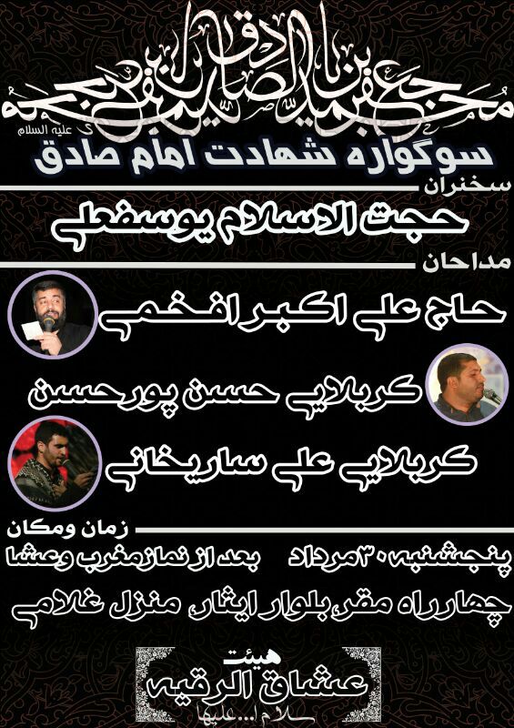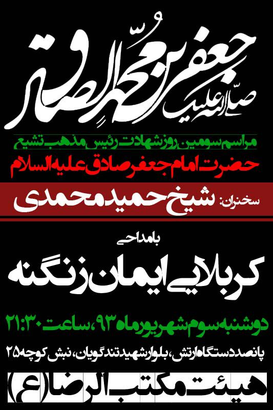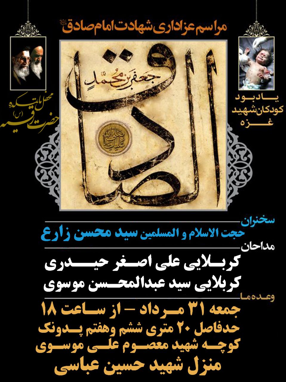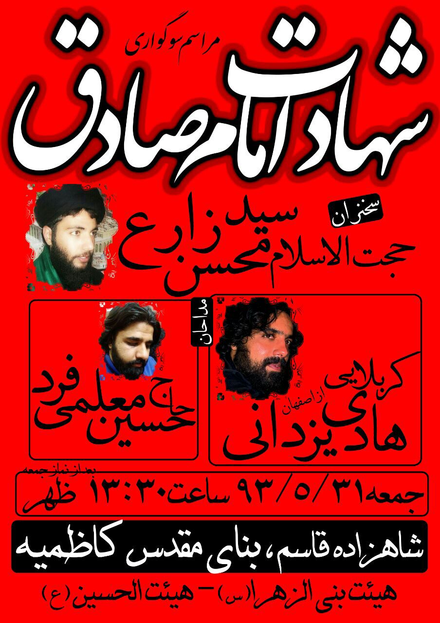 اعلام برنامه شهادت امام جعفر صادق(ع)