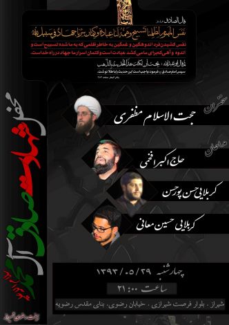 - ۹۴/۰۶/۰۳جشن دهه کرامت و بزرگداشت حضرت شاهچراغ(هیئت لواءالزینب شیراز)94.5.30