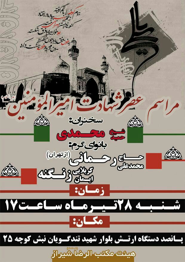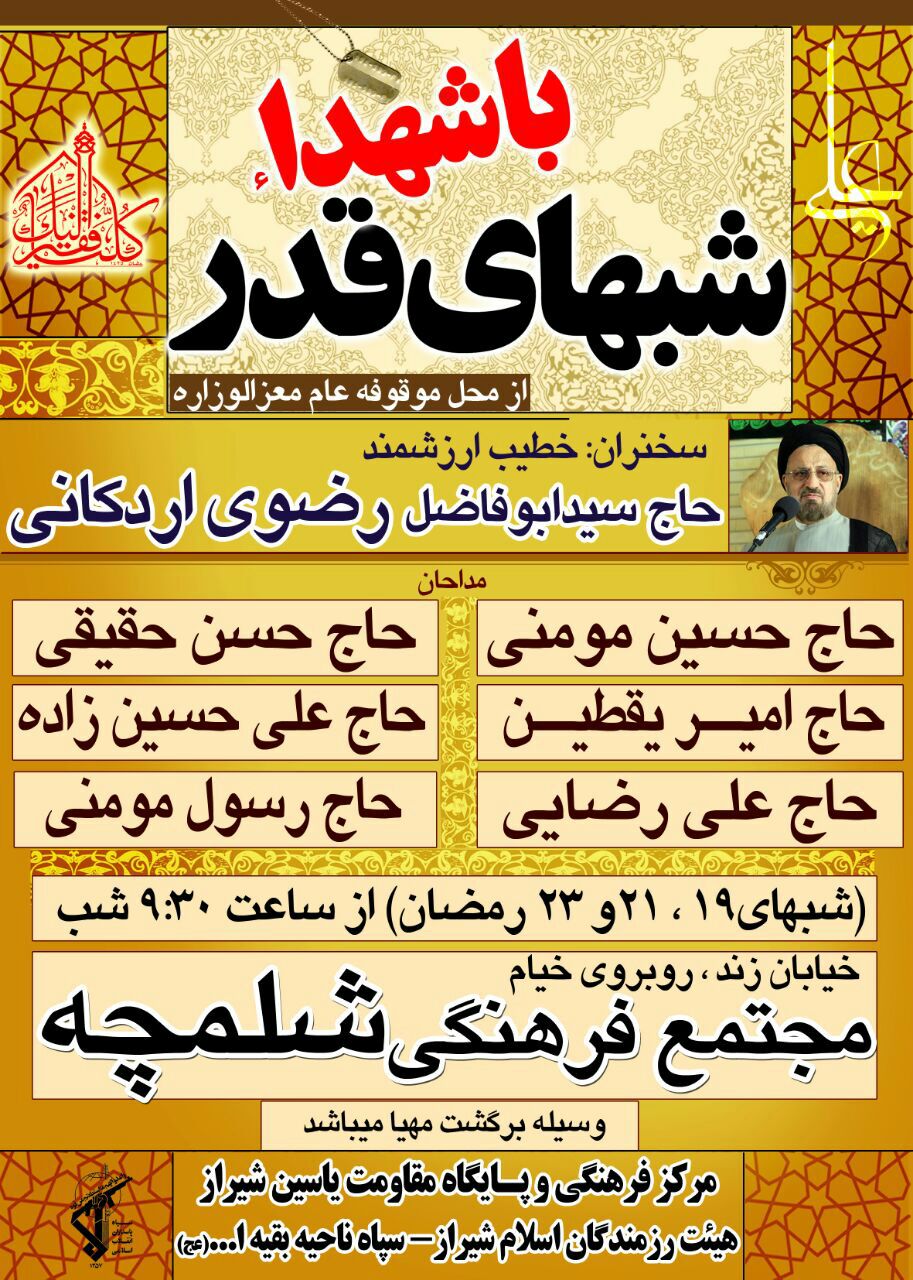 مکان: مسجد صاحب الزمان(عج)،جنب آرامگاه سعدیه